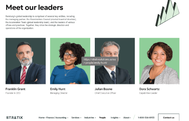 On StratixSolutions.us, “Franklin Grant” is introduced as a senior executive or founder, complete with a professional portrait and corporate biography. However, reverse-image correlation and persona-tracking tools reveal that the exact same photograph appears across hundreds of unrelated consulting, finance, lifestyle, demo, and template websites — each time under different names, titles, and jurisdictions.